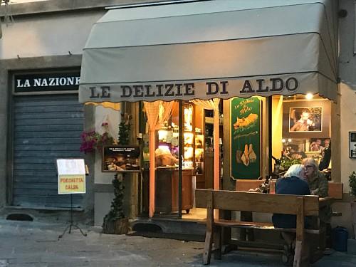 Siden begyndelsen med den lille slagterbutik på det lokale torv, har man udvidet med restauranten Le Delizie di Aldo, som er blevet en uundgåelig destination for elskere af det gode og ægte toscanske køkken. Det er Aldo og konen Giorgina, der styrer slagets gang i restauranten, som efterhånden er blevet en vaskeægte institution - bl.a. pga. deres varme værtskab og stolte traditioner. Le Delizie di Aldo er især berømt for deres porchetta, men er der kød på tallerkenen, kan man ikke gå galt i byen.